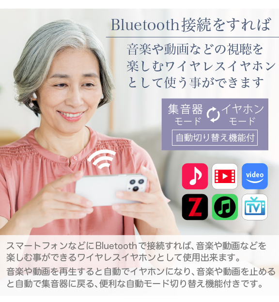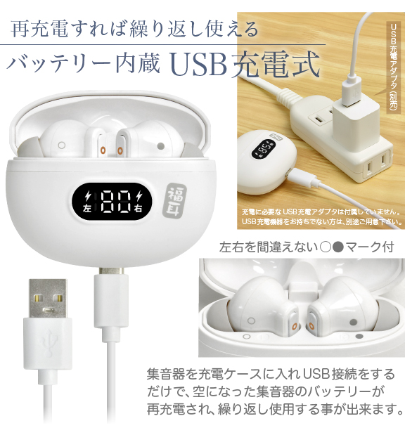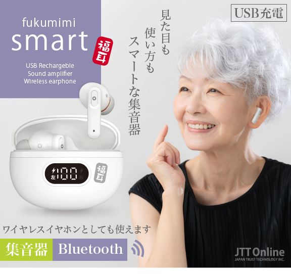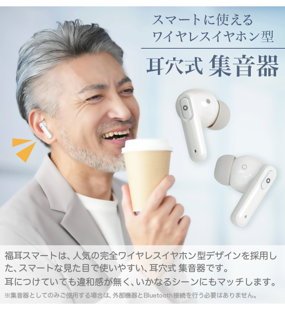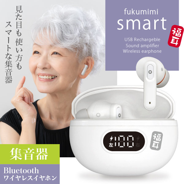 集音器 福耳 smart(ふくみみスマート) USB充電 耳穴式 音がクリアなデジタル音声 Bluetooth5.3 ワイヤレスイヤホンとしても使えます