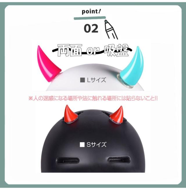 ヘルメットに装着できる <ツノ> Sサイズ 2個セットです! カワかっこいい♪ 信号待ちでちびっ子が手を振ってきます笑 みんなを笑顔にできるピースなアイテムです! |