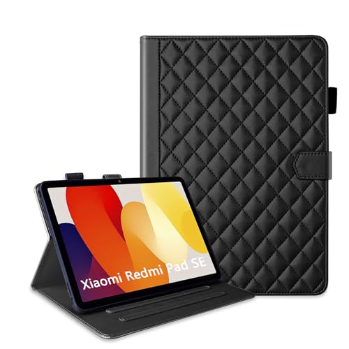 Xiaomi Redmi Pad SE ケース スタンディング機能 キルティグレザー調 redmi pad se ケース 柔らかいTPU 超軽量 人気 刺繍 Redmi Pad Se カバー 耐衝撃 カードスロットと現金収納機能 防塵 Xiaomi pad se ケース オートスリープ機能 ONETHEFUL シャオミ レドミパッドSE 保護ケース 11インチ - 黒