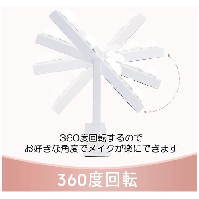 【360度垂直回転式】上下360度で角度を自由に調節され、お好きな角度でメイクが楽にできます。丈夫で安定な金属スタンドを使用して、耐久性に優れており、後ろに傾けても倒れません。