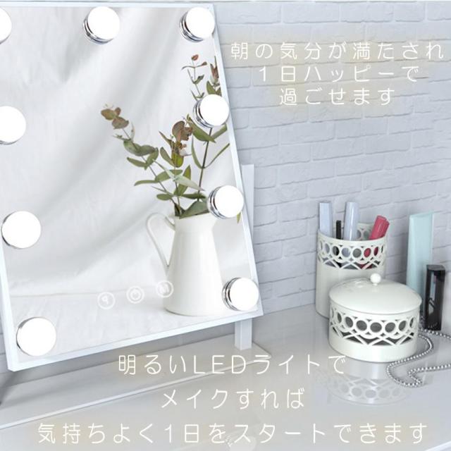 【9個LEDライト 化粧ミラー】9個高輝度LED電球が搭載され、本当の自分を映す、ムラなく顔全体を均一に照らすことができます。