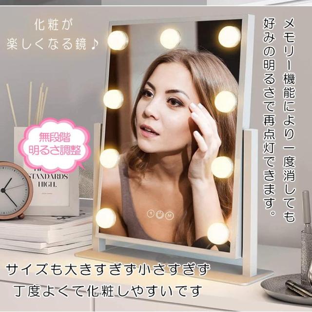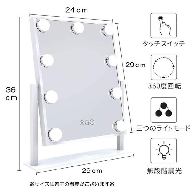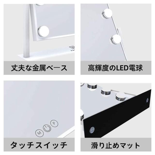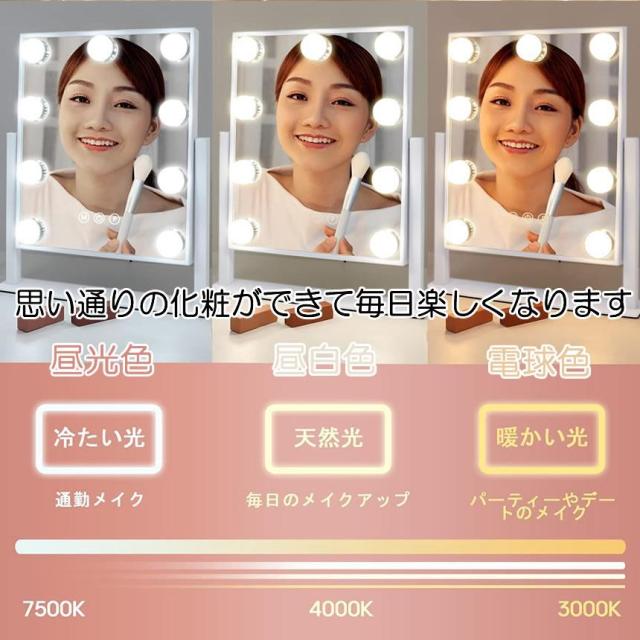 女優ミラー 卓上 ドレッサー 化粧鏡 ハリウッドミラー ライト メイクミラー ミラー 大きめ ライト付き 卓上ミラー 鏡 LED 3色照明モード 無段階明るさ調節可能