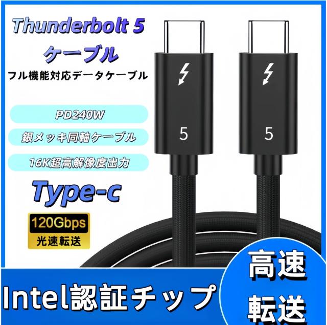 Thunderbolt5 対応 Type-C 高速データケーブル|最大80Gbps転送|PD 240W急速充電ケーブル|16K超高解像度映像出力|USB4.0