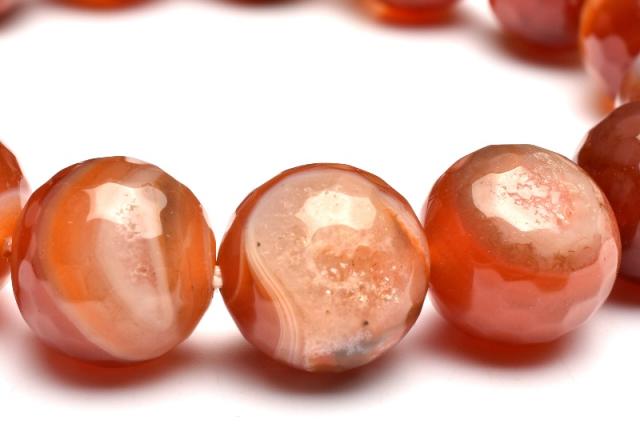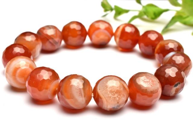 【1点物】大珠◇笑口ジオード カーネリアン赤瑪瑙 13.5-14mm 128面カット ブレスレット 金運・仕事運_MA4935