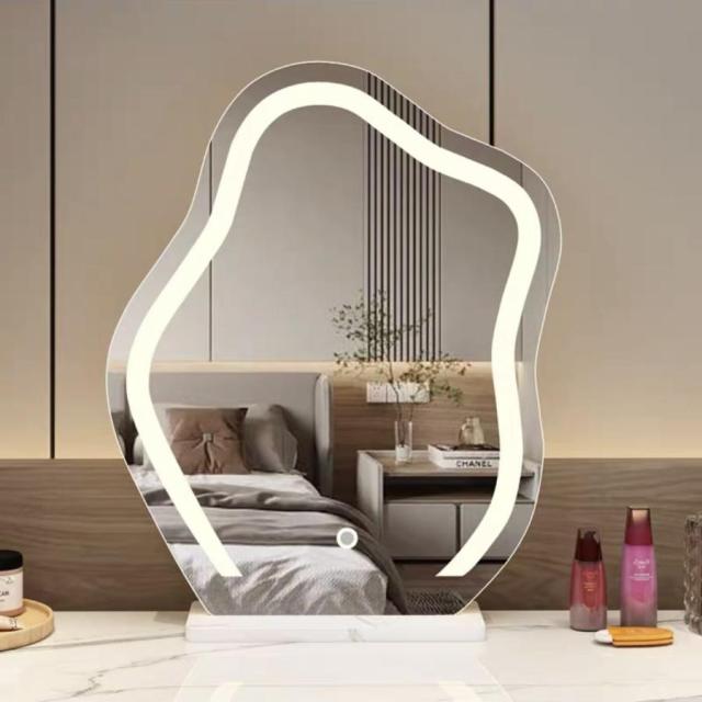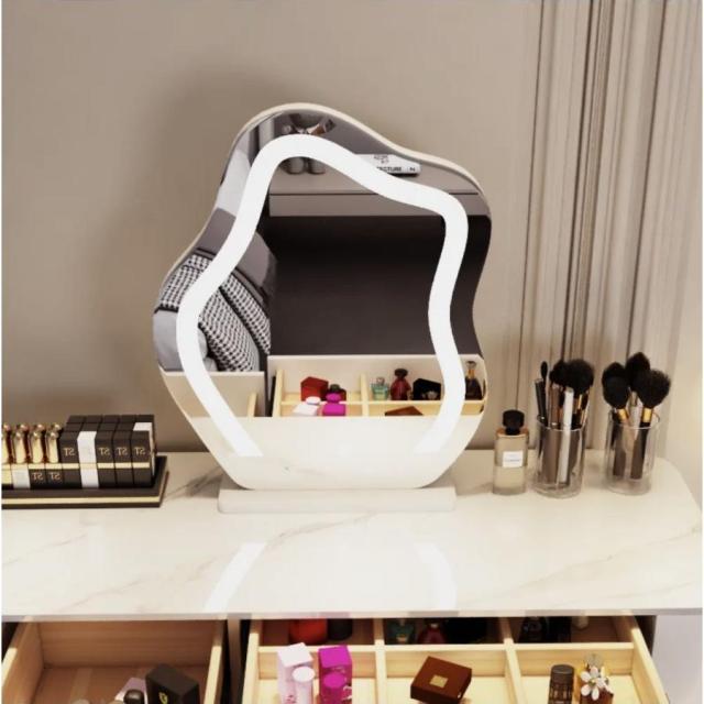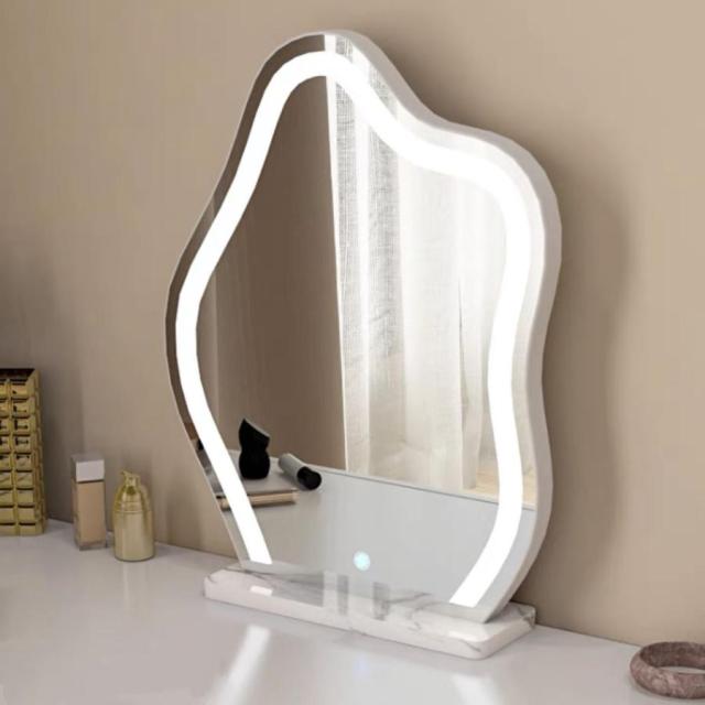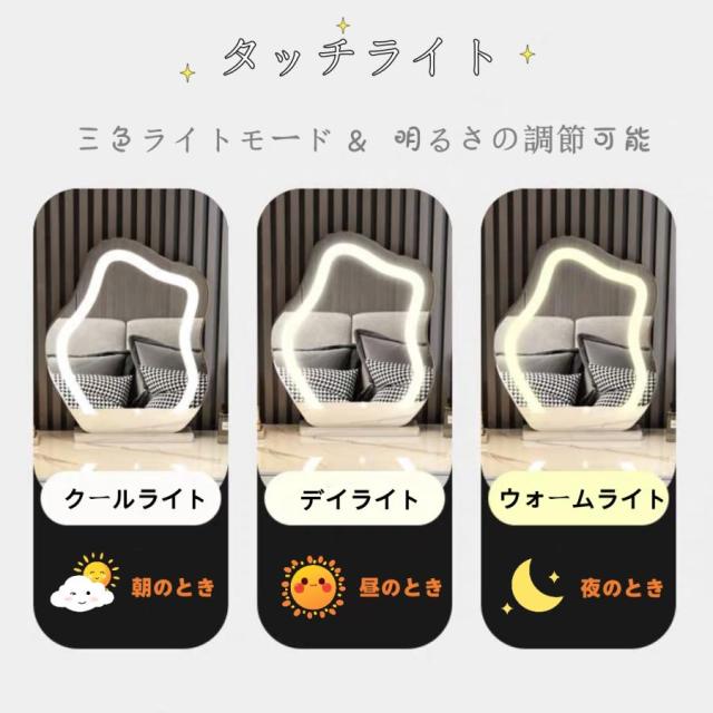 LEDミラー 自社製品 卓上 雲のようなミラー アダプター付き MR05 化粧ミラー コスメミラー 明るさ調節 三色ライトモード 女優LEDミラー 新タイプ