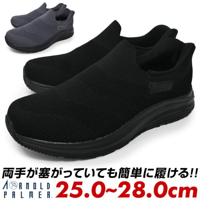 アーノルドパーマー ハンズフリーシューズ メッシュ スニーカー スリッポン メンズ 紐なし 履きやすい 歩きやすい 痛くない 疲れない 軽い 軽量 黒 灰色 真っ黒 黒ソール 介護靴 整骨院 整体 看護師 医者 医師 病院 ポイント消化
