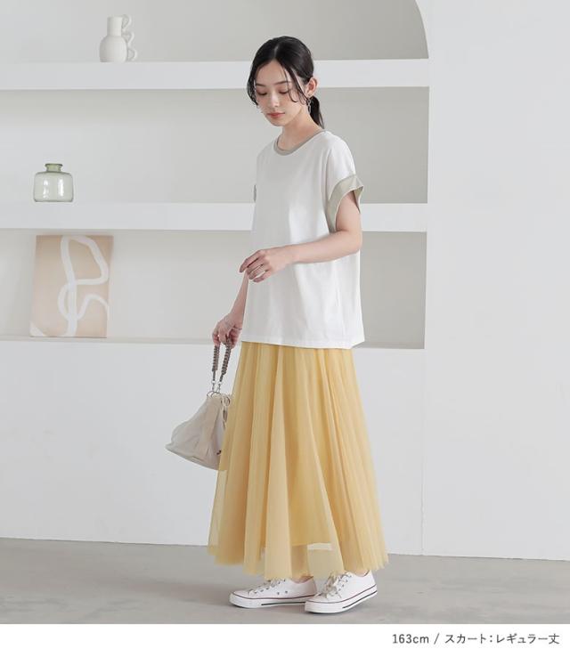 Tシャツ レディース トップス カットソー 半袖 折り返し袖 ラメ 小粒 薄手 Uネック 綿 コットン 配色 プルオーバー ゆったり 体型カバー 春 夏 クルーネック 大人女子 お洒落可愛い 大人カジュアル ベーシック ニュアンス ラフ エフォートレス オフィスカジュアル 上品 きれいめ ナチュラル 袖コンシャス ミディ丈 ミドル丈 チュニック丈 切り替え 微配色 無地 綿100% コットン100% レイヤード 重ね着 おうちで洗える カジュアル シンプル モード キレカジ フェミニン ゆる 楽ちん Sサイズ Mサイズ Lサイズ LLサイズ 3Lサイズ XLサイズ フリーサイズ ぽっちゃり 大きいサイズ プラスサイズ 10代 20代 30代 40代 50代 60代 低身長 高身長 ボトムス スカート ロングスカート マキシスカート フレアスカート チュールスカート ボリュームスカート フレア ウエストゴム 裏地付き 三層仕立て 春夏 オフホワイト 白 サフラン 202507 2点セット プレゼント 福袋 コーディネートセット コーデセット 中身が見える福袋 上下セット ギフトセット[ID]12co0l9