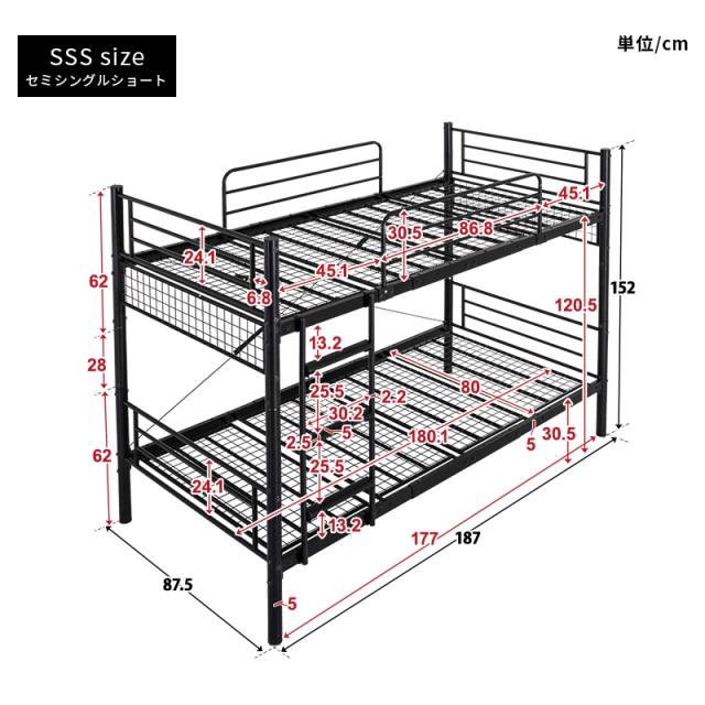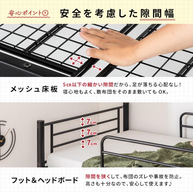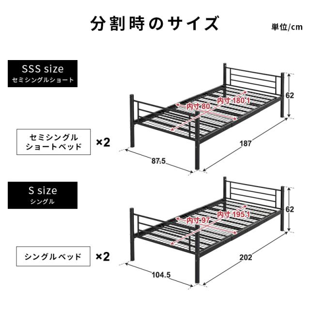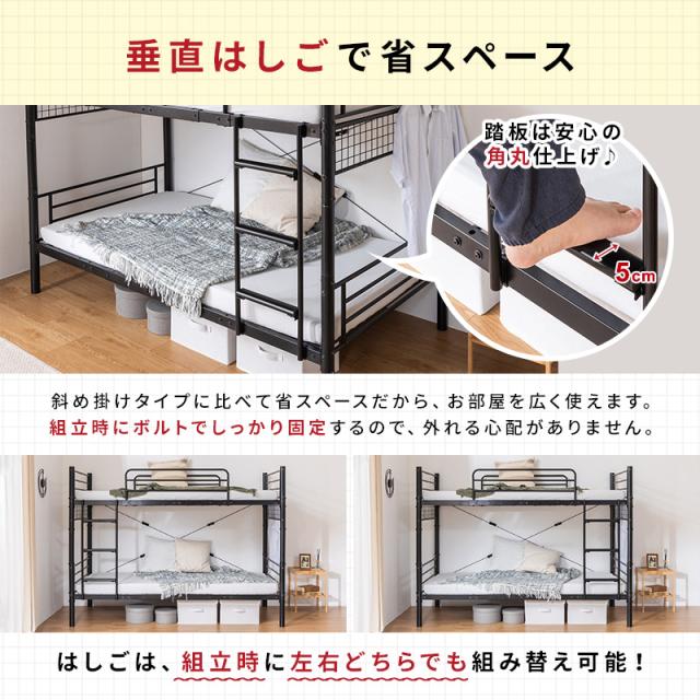 2段ベッド パイプベッド 分割 安全 頑丈 マットレス付 三つ折り高反発マットレス セミシングルショート はしご 転倒防止 ホワイト ブラック