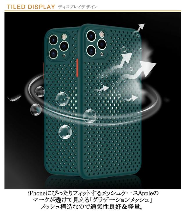 | 【超薄型&超軽量】【メッシュデザイン & 放熱メッシュ構造】【硬すぎず、柔らかすぎないエラストマー(TPU)】 iPhoneにぴったりフィットするメッシュケースAppleのマークが透けて見える「グラデーションメッシュ」メッシュ構造なので通気性良好&軽量。 フレーム部分とカメラのフチを高く設計し、液晶画面とカメラレンズを磨くや傷から保護しております。 フラットなiPhoneにゆるやかな曲面をプラスしたラウンド構造でケースを設計にしたことで手のひらにすっと馴染みます、 サラサラとした手触り、またシリコンと違い適度な滑りがある為ポケットの出し入れがスムーズに行えます、長く持っても手が疲れる感じもありません。 ソフトケースより硬く、ハードケースより柔らかい優れた弾力性の「エラストマー(TPU)」が衝撃を吸収。 | |
