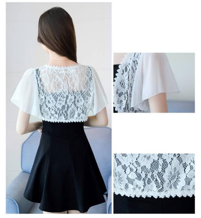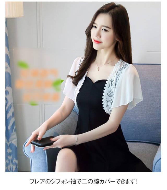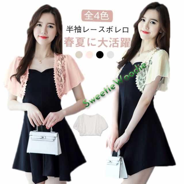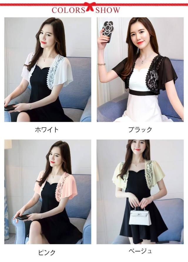 半袖 大きサイズ 夏 トップス 可愛い ショート丈 シフォン レディース ショール ボレロ レース サマーカーディガン レース トップス カーディガン ホワイト ブラック ピンク ベージュ