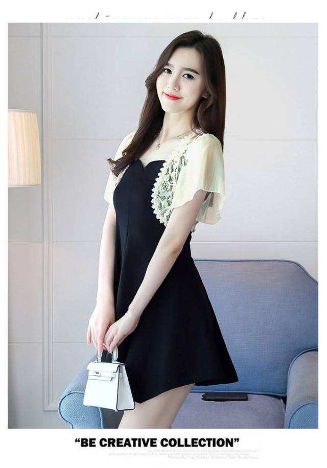 | サラっとおしゃれなレースボレロ。 フレアのシフォン袖で二の腕カバーできます! ショット丈デザインでスッキリとした印象を与えてくれます。 キャミソール、ワンピースやドレスに合わせやすい一着です。 | |