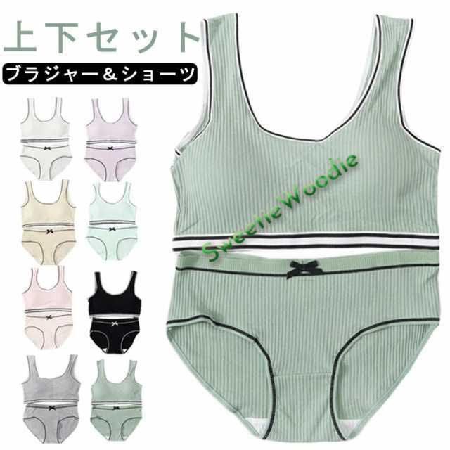 ジュニアブラジャー リブ スポーツブラ 高校生 ヨガ ショーツセット 学生 中学生 ノンワイヤーブラ リボン フィットネス 高校生 シンプル ジュニア向け 運動 トレーニング ベストタイプ 子供 小学生