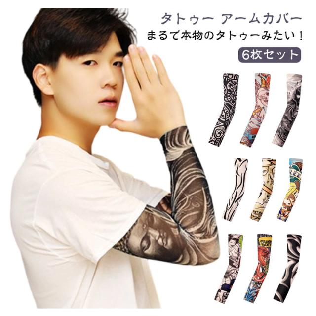 送料無料 タトゥー アームカバー アームスリーブ 6枚入り 接触冷感 男女兼用 レディース メンズ 女性 男性 肘サポーター 刺青 入れ墨 入墨 デザイン uvカット 紫外線対策 日焼け予防 腕カバー 仮装 コスプレ おしゃれ かっこいい デザイン豊富 全102種類
