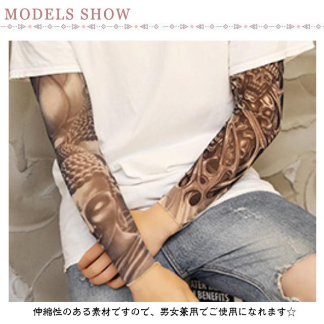 | まるで本物のタトゥーみたい!タトゥー アームカバー ファッションとしてはもちろん、日焼け対策やコスプレ用としても◎ 伸縮性のある素材ですので、男女兼用でご使用になれます☆ 軽くて薄く、通気性がいいのでムレにくく、汗も吸水してすぐ乾燥します。 | |