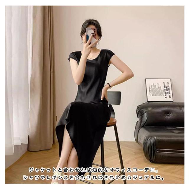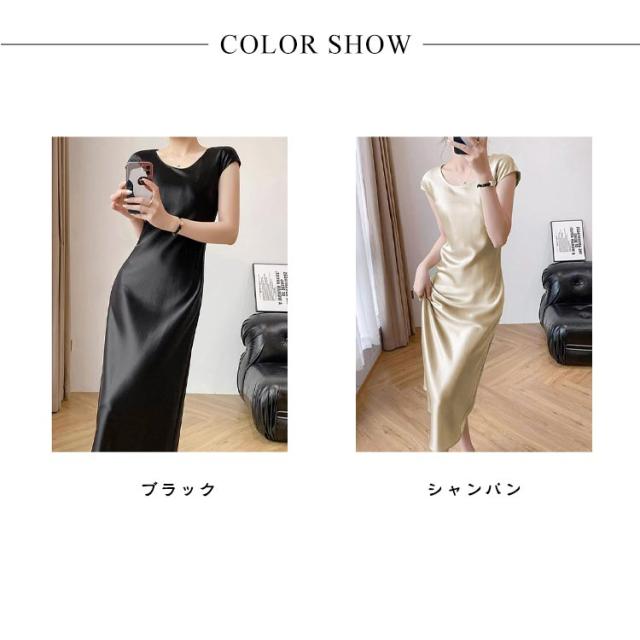 春夏コーデ キャミ 半袖 ドレス サテン 大きいサイズ ロングワンピース キャミソール レディース キャミドレス タンクワンピース 大人 キャミソールワンピース ワンピース サテン風 ノースリーブ 無地 重ね着 シャツワンピ 上品 きれいめ 通勤