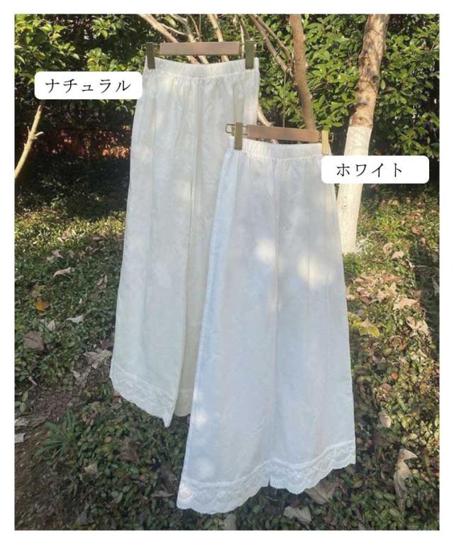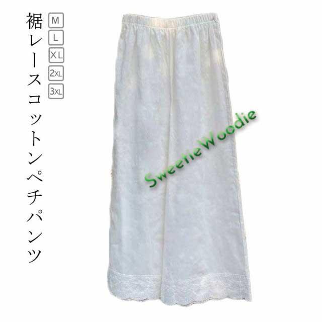 ぺチパンツ 九分丈 ぺチパンツ ペチコート 裾レース 綿 ワイドパンツ パンツ コットン レイヤード 透け防止 ボトムス インナー 重ね着 リラックスパンツ ロング 楽ちん 春