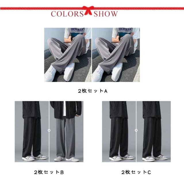 ストレートパンツ チノパン 2枚セット ジョガーパンツ スウェットパンツ アイスシルク 2枚セット 接触冷感 吸汗速乾 パンツ 長ズボン メンズ イージーパンツ スキニー ワイドパンツ ウエストゴム 大きいサイズ 無地 ひんやり 涼しい ロングパンツ 春 夏