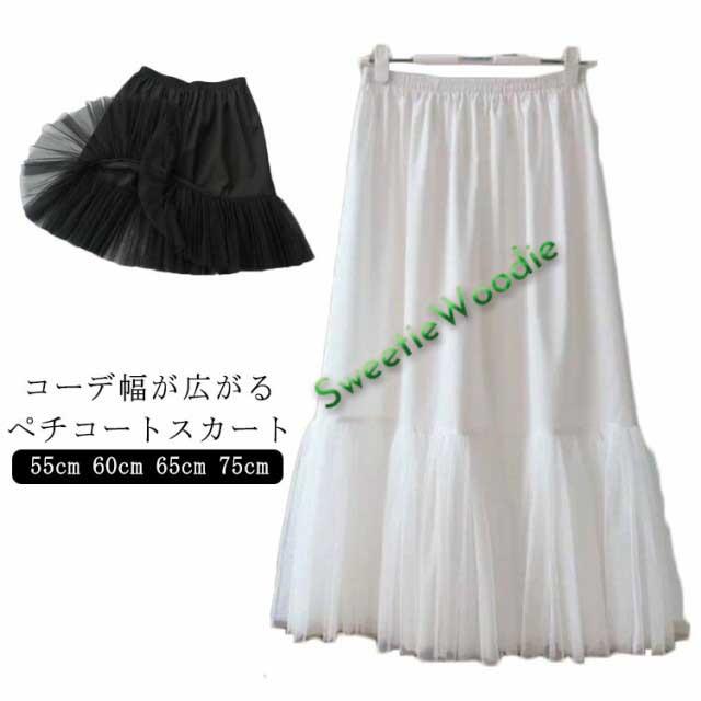 | 55cm 60cm 65cm 75cm コーデ幅が広がるペチコートスカート ウエストはゴム仕様 裾の部分はふんわりの柔らかいチュール 吸汗速乾性のあるなめらかな肌ざわりの素材 | |