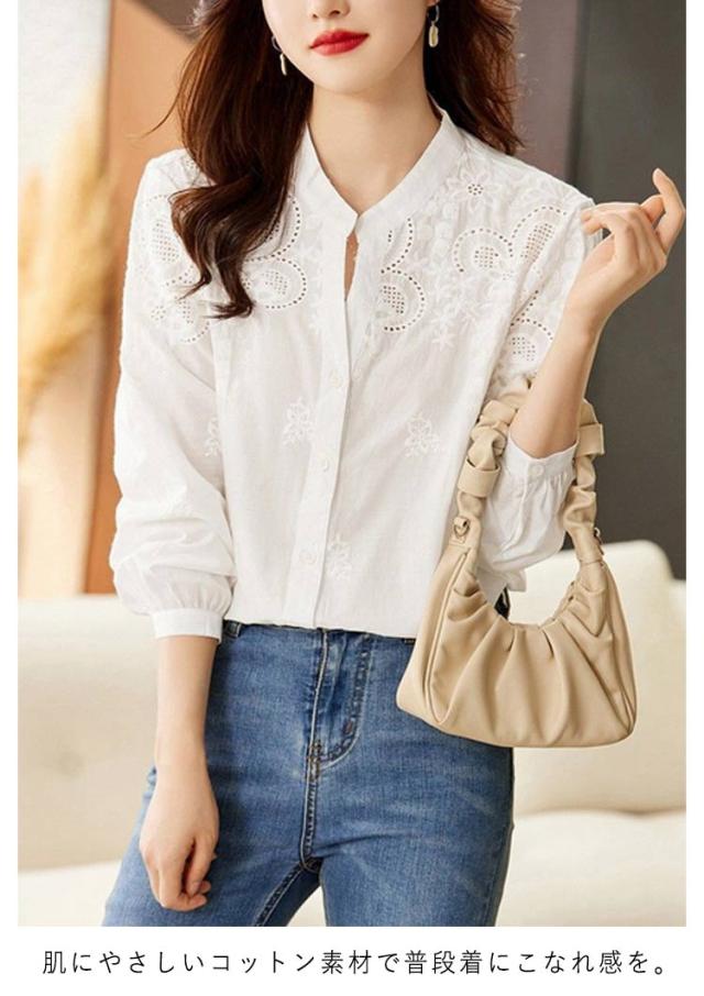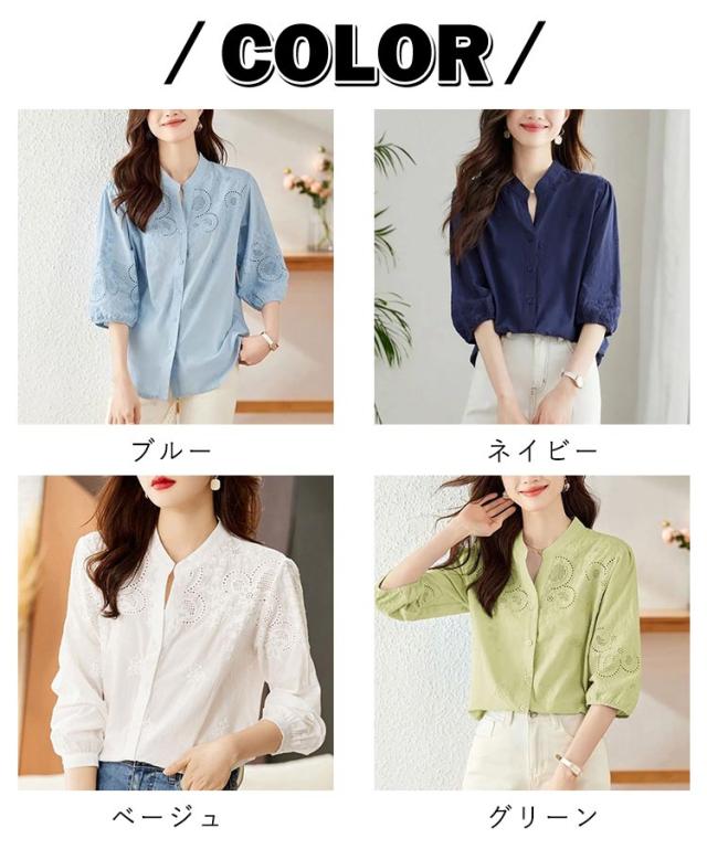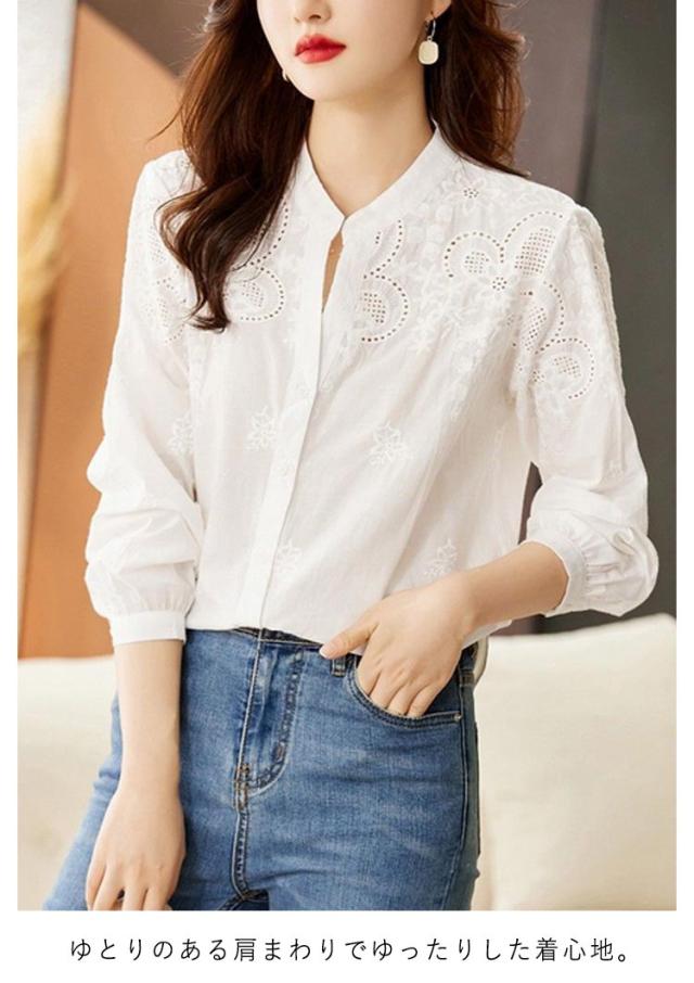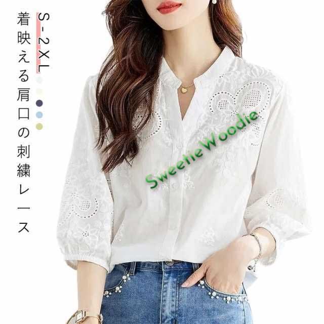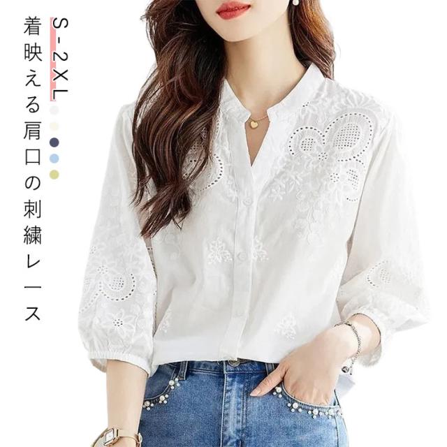 着映える肩レース 50代 トップス 袖 レディース 白 ブラウス 着映える肩レース シャツ 春夏 春 トレンド 60代 レース カジュアル 七分袖 服 チュニック 刺繍 春夏 大きいサイズ 40代 ボリューム 綿 コットン 20代 春服 夏服