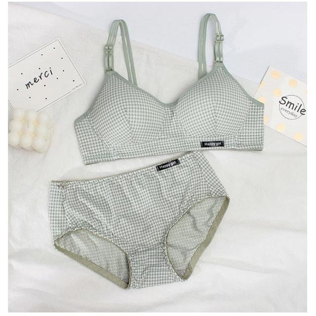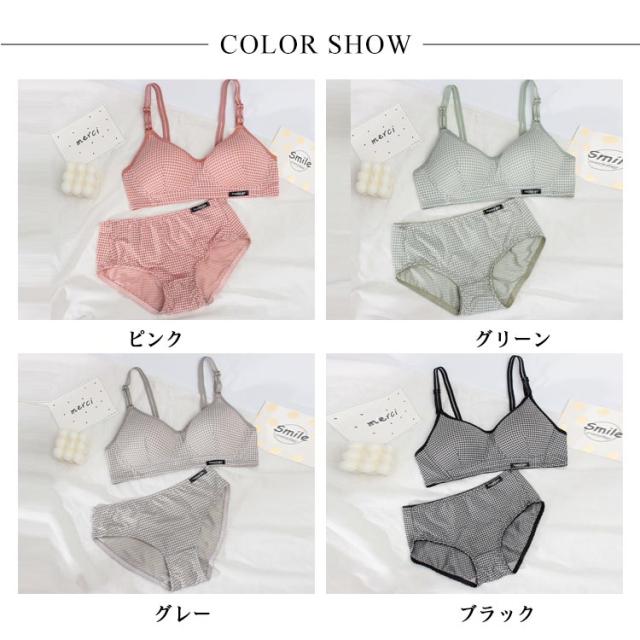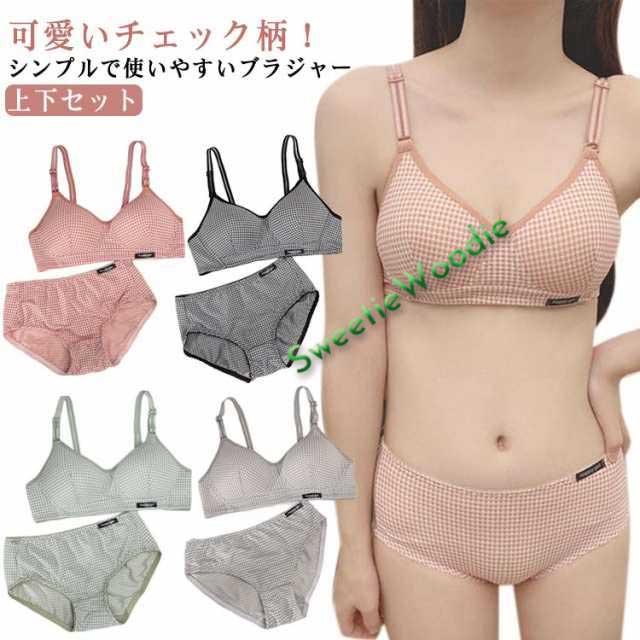 ノンワイヤー カップ付き 上下セット ショーツ ブラセット ブラショーツ ブラジャー ファーストブラ 可愛い 中学生 チェック柄 スポブラ 女の子 ガールズブラ ジュニア 高校生 中学生