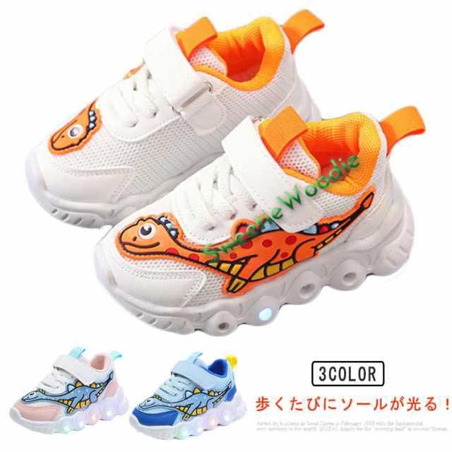 光る靴 ベビー スニーカー ダイナソー 男の子 メッシュ フラッシュシューズ 光る靴 通気性 女の子 キッズシューズ 恐竜 歩きやすい 軽量 滑り止め 運動靴 子供靴 春 夏