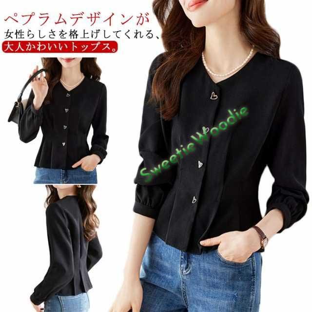 ペプラム 羽織り ライトアウター ブラウス チュニック シャツ ペプラム ペプラム フレア ブラウスシャツ トップス カットソー 長袖 Vネック ペプラム ウエストシェイプ スタイルアップ オフィス 通勤