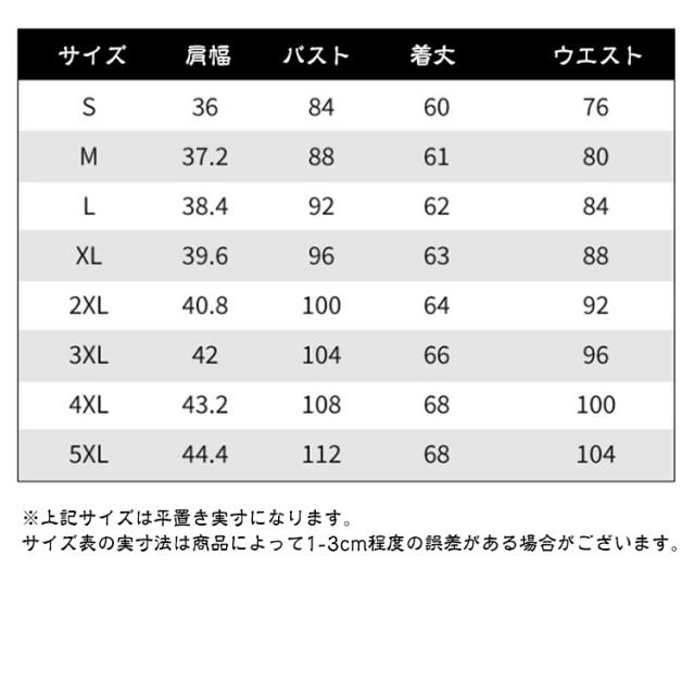 | サイズ | S M L XL 2XL 3XL 4XL 5XL |