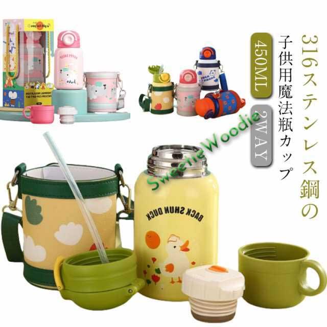 ストロー 紐付き キッズ キッズ ワンタッチ 水筒 ベビー コップ かわいい 子供 水筒カバー キッズ 子ども おしゃれ ストローマグ ストロー付き水筒 ステンレス 2way 400ml こども 子供用 幼児 保育園 入園 ギフト プレゼント 女の子 保温 保冷