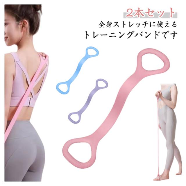 肩こり解消 ヨガバンド 2本セット 姿勢矯正 男女兼用 ピラティス 8の字バンド トレーニングチューブ 筋トレ ストレッチバンド トレーニングバンド エクササイズバンド 肩甲骨はがし ヨガバンド ダイエット ジム用 滑り止め 軽量 コンパクト