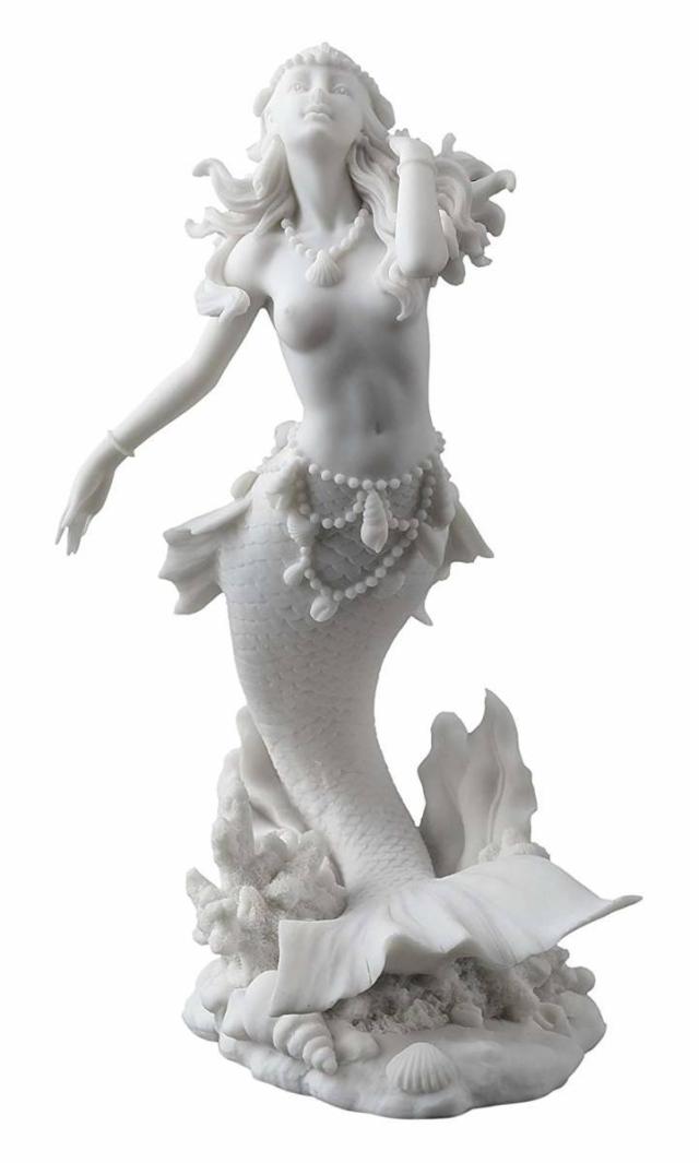 【海から浮かび上がる美しい人魚(マーメイド) 大理石風 彫刻 彫像(輸入品)】