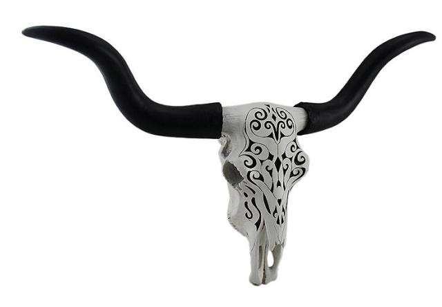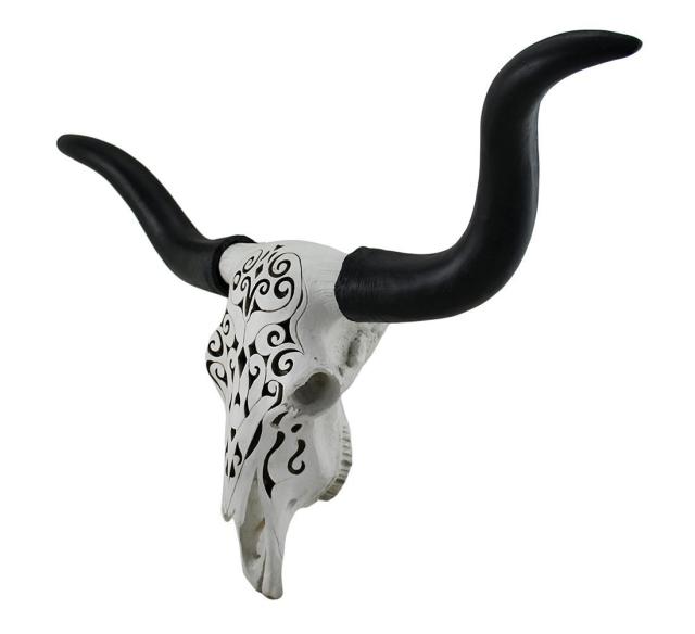 【Resin Wall Sculptures Hd45898 Longhorn And Lace Black & White FiligreeDesign Hanging Steer Skull Statue 27.25 X 17.5 X 6 Inches White】