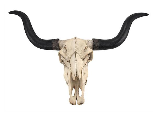 【白と黒のデザイン模様の ロングホーン ハンギングスカル 頭蓋骨 壁装飾 彫像 彫刻(輸入品)】