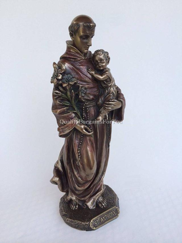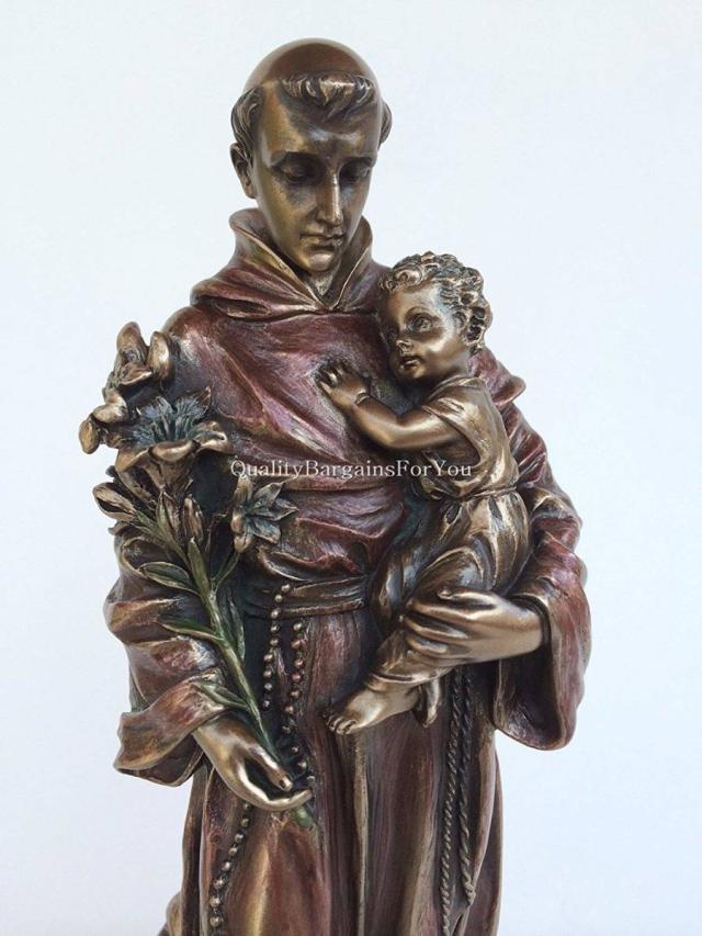【Saint Anthony of Padua Holding Baby Jesus Statue Sculpture Figurine (Bronze)】