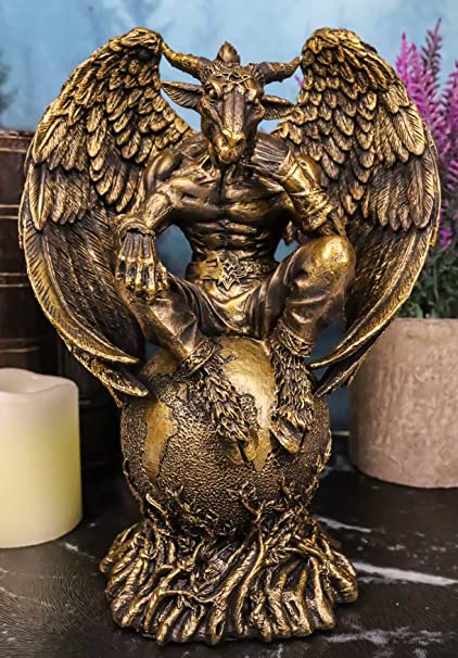 【Ebros Gift Sabbatic Goat The Thinker Baphomet Sitting On The Globe Statue7.75" Tall Baphometh with Pentagram Star Satanic Idol Worship AltarFigurine Golden Calf Goat of Mendes Decorative Sculpture】