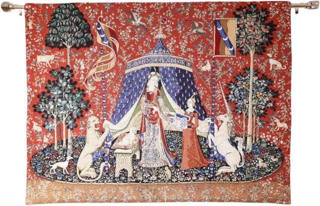 【Desire-the Lady and the Unicorn Medieval Jacquard Woven 47"w X33.5"l Wall Hanging Tapestry 】
