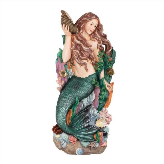 メロディコーブのファンタジーマーメイドは、アーチ形の尾びれの近くの貝殻から、形の良いフォルムを取り入れた個性的なトレスまで、細部にわたる装飾が施された複雑な女神の彫刻として、あなたの壁の装飾を即座に活気づけます。
