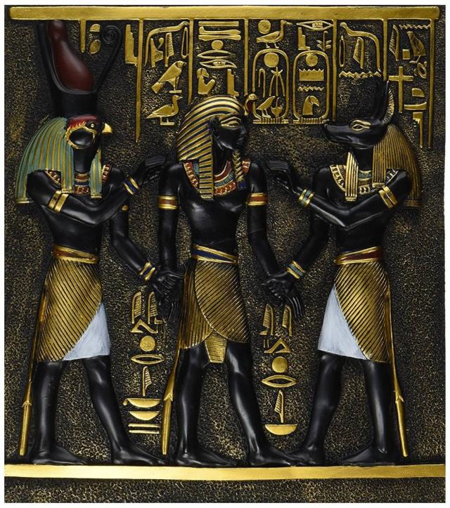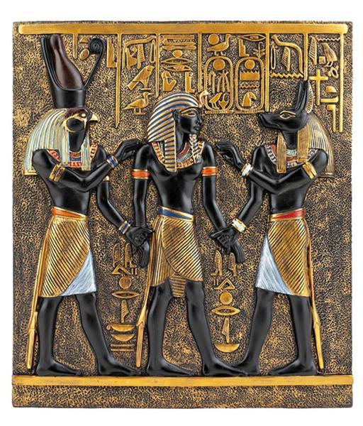 【ホルス神 とアヌビス神の間に立つラムセス1世の壁画彫刻 彫像/ カイロ エジプト ピラミッド 神殿 王宮 ピラミッドレリーフ(輸入品)】