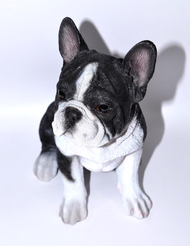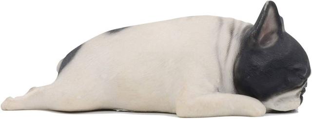 【横になっている眠っているブラック&ホワイト色の、フレンチブルドッグの子犬置物、ギフト、彫像、彫刻 ドッグカフェ 触れ合いパラダイス 獣医 幼稚園 児童館(輸入品)】