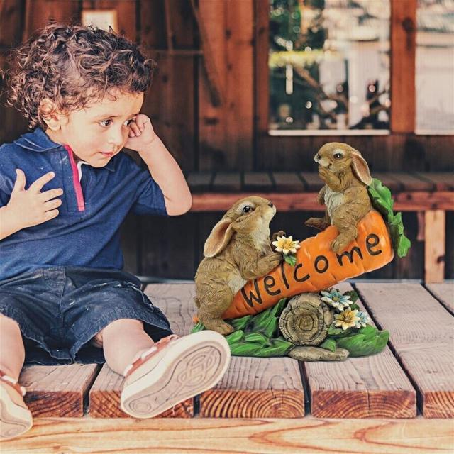ウサギ バニー仲間 ウェルカムサイン 置物、 彫像、彫刻 ギフト、新築祝い 玄関、エントランス、 幼稚園 児童館(輸入品)