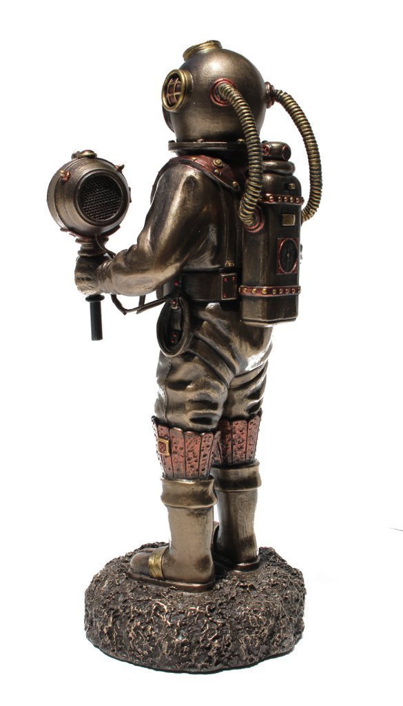【西洋彫刻 ライト付き、ダイビングベル スチームパンク風 骸骨(スケルトン)約27cmコールドキャストブロンズ製置物 彫像 プレゼント(輸入品)】