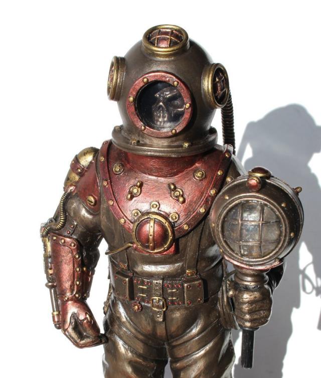 【Steampunk Skeleton In Diving Bell With Light, Cold Cast Bronze, 10 5/8 Inch Tall】