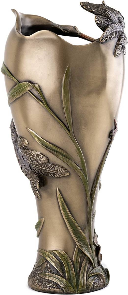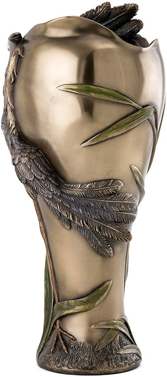 【Top Collection Art Nouveau Style Vase - Beautiful Cranes with DragonflyPitcher in Cold Cast Bronze - 13.25-Inch Decorative Tabletop】