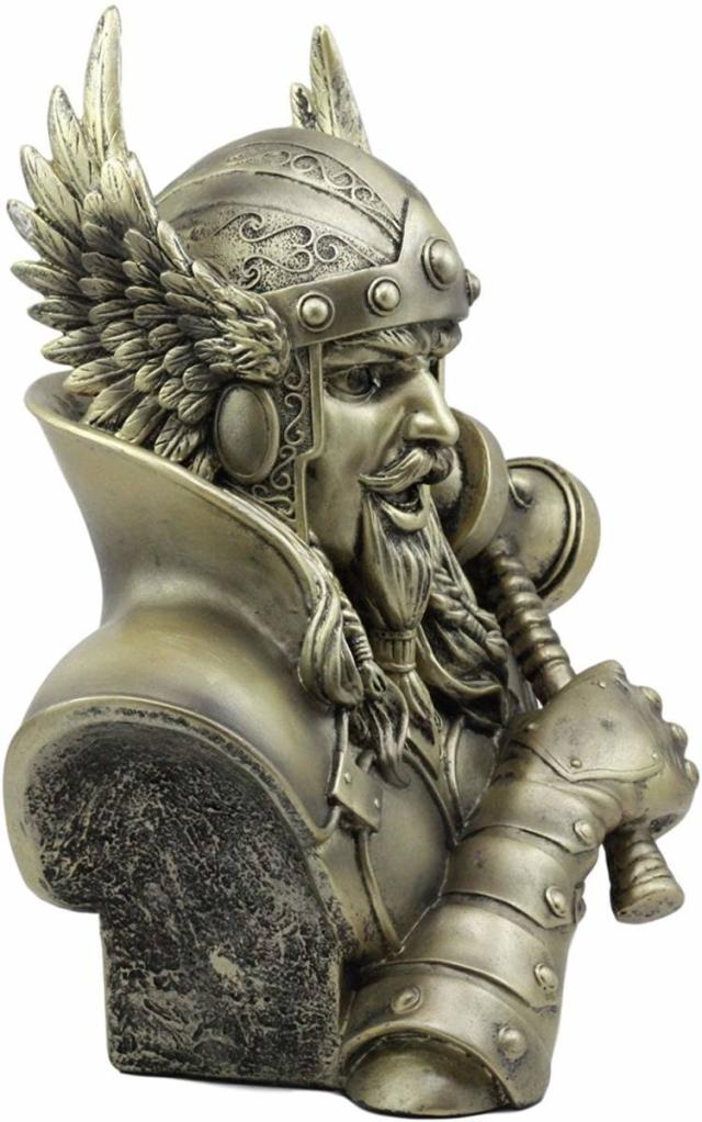 【大きなトールハンマー を振りまわす、トール・オディンソン胸像 高さ 約28cm北欧神話の雷神 アスガルドの支配者オーディン息子の彫像 彫刻(輸入品)】
