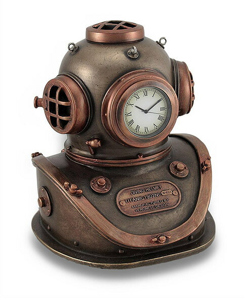 【Resin Desk Clocks Bronze And Copper Finish Mark V Dive Helmet