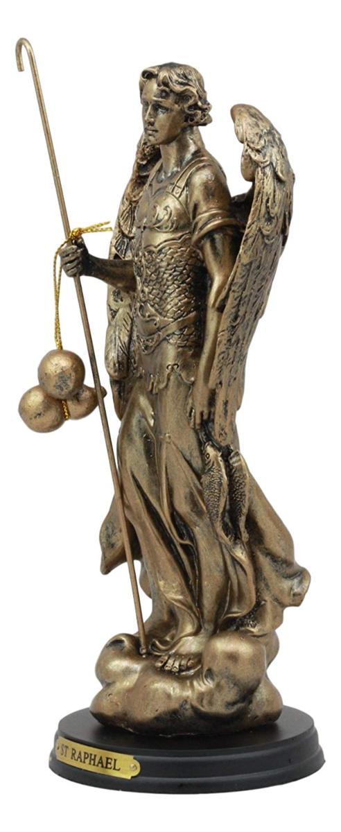 【Ebros Byzantine Catholic Church Archangel Raphael With Staff And HealingOil Statue 8"Tall Saint Rafael The Archangel God's Healing DecorativeFigurine】