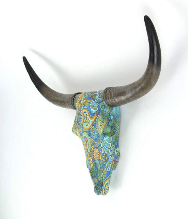 ペイズリー柄の、ロングホーン・スカル 雄牛の頭骸骨