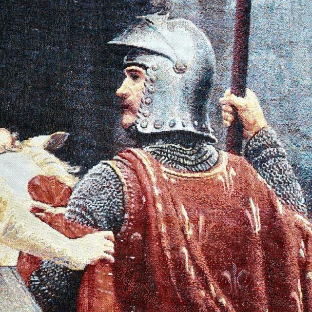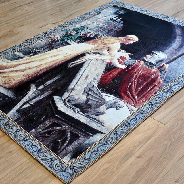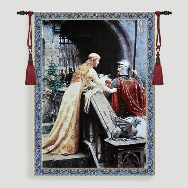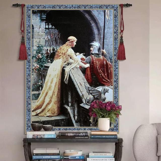 西洋タペストリー 美しい幸運の女神 と甲冑を着た中世騎士 ジャカード織りタペストリー/洋風邸宅 貴賓室 新築祝い プレゼント贈り物(輸入品