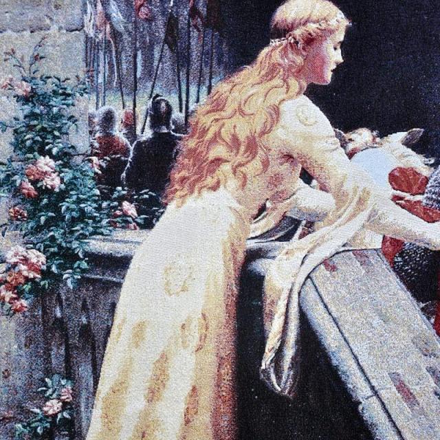 西洋タペストリー 美しい幸運の女神 と甲冑を着た中世騎士 ジャカード織りタペストリー