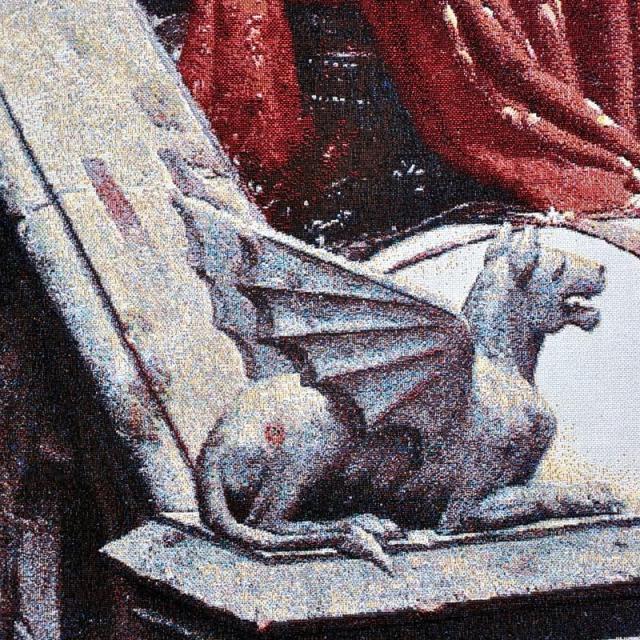 このタペストリーは、ジャカード織りで、完吊り下げるため掲げ棒のポケットがついており、