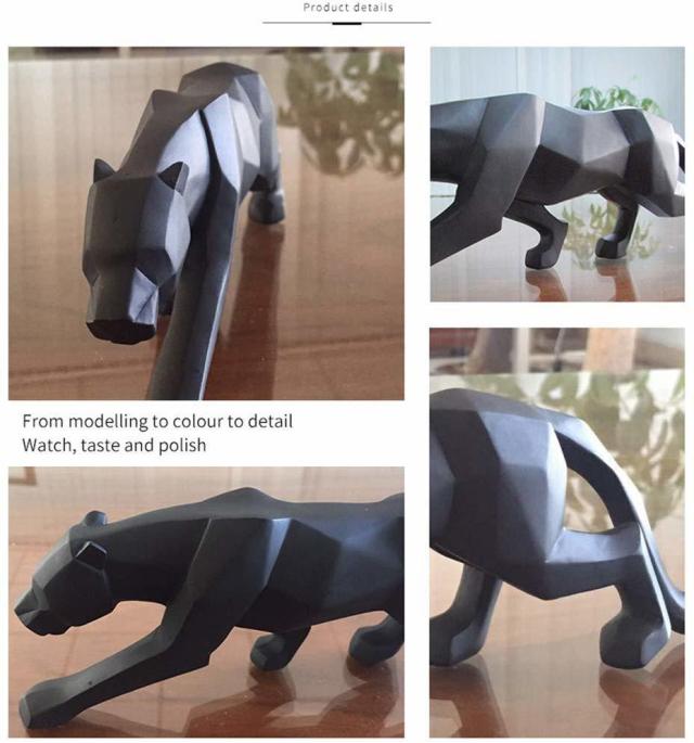 【wyhweilong Panther Sculpture/Statue Geometric Modern Resin Leopard Ornaments/Decorfor Home Bookcase Shop Window(Black Small)】